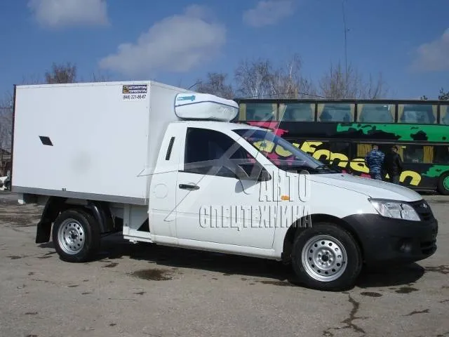 Рефрижератор ВИС 2349 ГРАНТА, г/п 850 кг. Машина с полу-рамной конструкцией, задняя подвеска рессорная (трёх листовые, с возможностью добавления листов), двигатель 1,6 - инжекторный, 8 клапанный. Предназначен для перевозки охлажденных и замороженных продуктов.