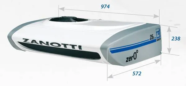 Данная конструкция холодильного агрегата представляет собой моноблок. Конденсатор и испаритель представляет собой единый блок, который монтируется на переднюю стенку кузова фронтально через специальное технологическое окно.