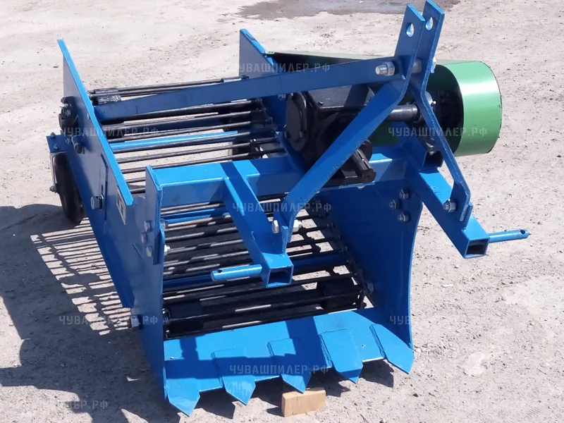 Навесная картофелекопалка 4U-1 (4У-1) работает с минитракторами мощность которых не меньше 20 лошадиных сил. Такая картофелекопалка рассчитана на обработку одного рядка с шириной захвата в 60 см и глубиной до 25 см. Легка в использовании и обслуживании, не требует каких-нибудь определенных настроек.