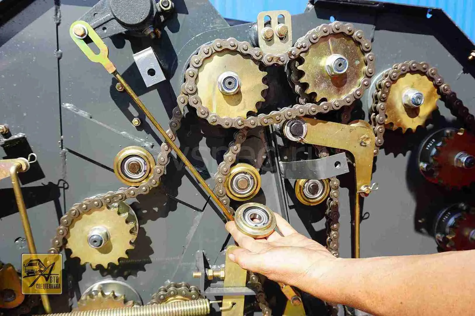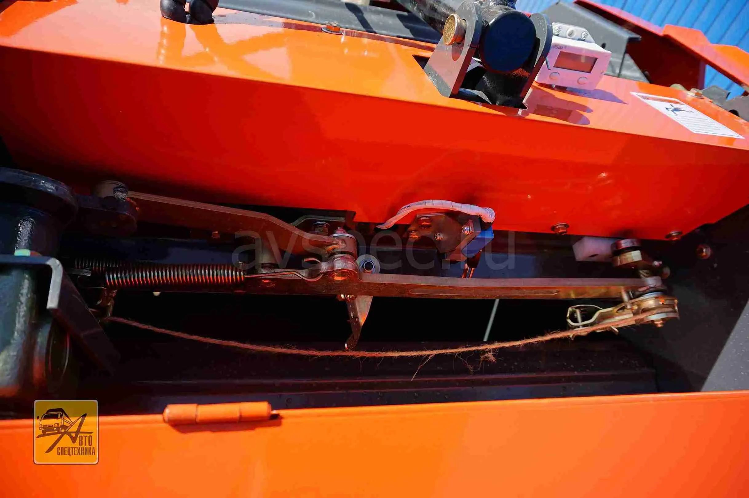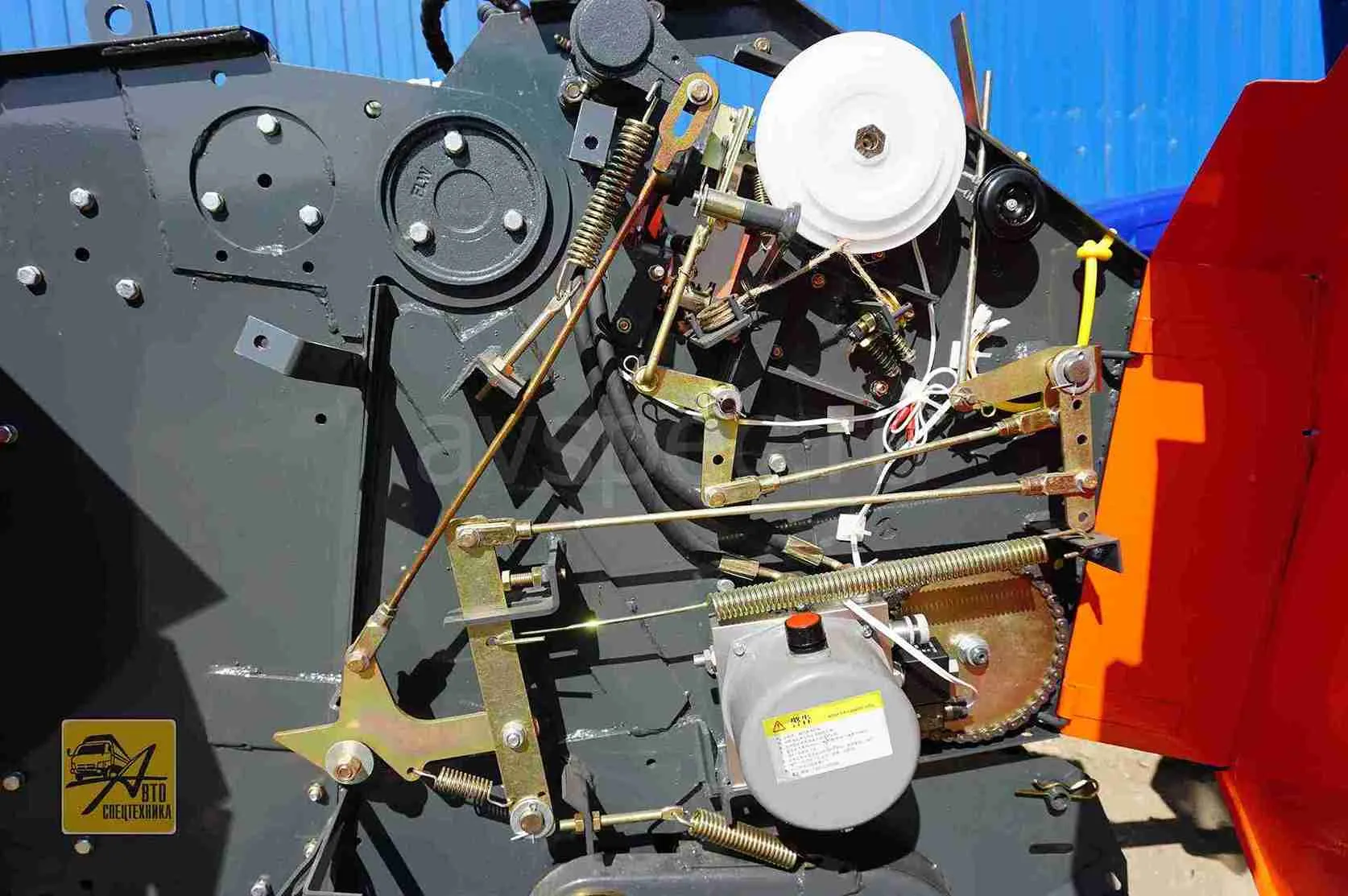 Рабочий отсек оснащен звуковой и световой сигнализаций, сообщающей о заполнении. Если пресс подборщик подключен к гидросраспределителю мини-трактора, подъем запирающей створки сброс рулона производится в полуавтоматическом режиме. Кроме того, оператор имеет возможность выполнить эту операцию вручную, воспользовавшись механическим рычагом.